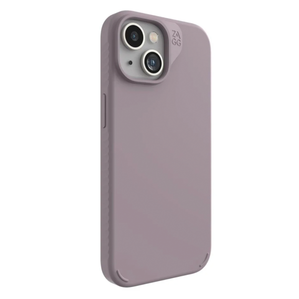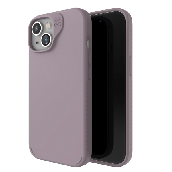 The ZAGG Manhattan Snap Lavender Case for Apple iPhone 15 / 14 / 13 offers sleek everyday protection with drop resistance up to 4 metres (13 feet). Reinforced with graphene for exceptional strength in a slim design, it features a smooth premium silicone finish that feels comfortable in hand and slides easily into pockets. MagSafe compatible, it works with MagSafe accessories and most wireless chargers, and is made with up to 42% post consumer recycled materials.