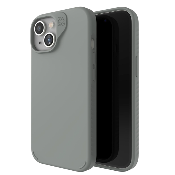The ZAGG Manhattan Snap Sage Case for Apple iPhone 15 / 14 / 13 offers sleek everyday protection with drop resistance up to 4 metres (13 feet). Reinforced with graphene for exceptional strength in a slim design, it features a smooth premium silicone finish that feels comfortable in hand and slides easily into pockets. MagSafe compatible, it works with MagSafe accessories and most wireless chargers, and is made with up to 42% post consumer recycled materials.