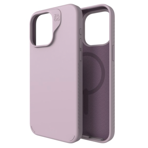 The ZAGG Manhattan Snap Lavender Case for Apple iPhone 15 Pro offers sleek everyday protection with drop resistance up to 4 metres (13 feet). Reinforced with graphene for exceptional strength in a slim design, it features a smooth premium silicone finish that feels comfortable in hand and slides easily into pockets. MagSafe compatible, it works with MagSafe accessories and most wireless chargers, and is made with up to 42% post consumer recycled materials.